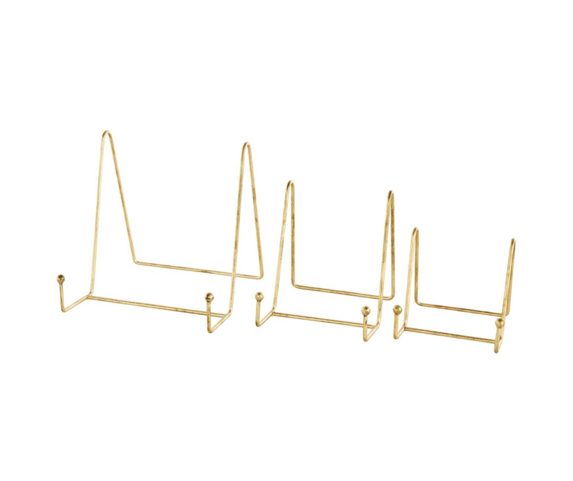 Caballete de exhibición triangular ancho de metal dorado, juego de 3, 25,4 cm, 20,3 cm y 15,2 cm de alto