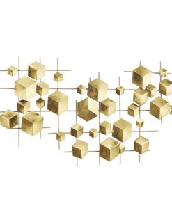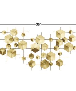 Información adicional importante: Hecha a mano de un material metálico sólido y duradero, esta decoración de pared dorada para el hogar es duradera y visualmente llamativa. La decoración redonda para pared cuenta con un elegante acabado dorado, que añade un toque de glamour a cualquier espacio. La decoración de la pared de hierro presenta detalles cúbicos en diferentes tamaños, todos apoyados por un marco de metal estilo cuadrícula en la parte posterior, lo que brinda un atractivo estético único.