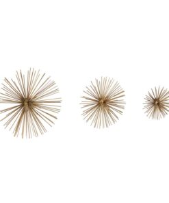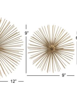 Información adicional importante: El set de decoración redondo para pared presenta un elegante acabado dorado satinado, que añade un toque contemporáneo a las paredes de tonos claros El conjunto de 3 decoraciones de pared de metal muestra diseños únicos de estallidos de estrellas en 3D con acabados metálicos, creando formas dinámicas de orbes que sobresalen de la pared en tres tamaños distintos.