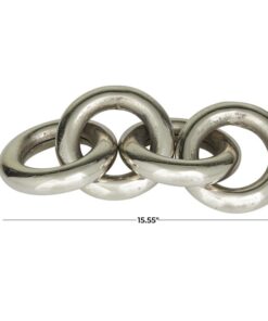 Leve descripción del producto: Las cadenas metálicas decorativas están hechas de aluminio de alta calidad. La escultura de metal con eslabones de cadena muestra 4 aros en un diseño simplista y versátil que se puede usar como decoración de mesa o como pisapapeles.