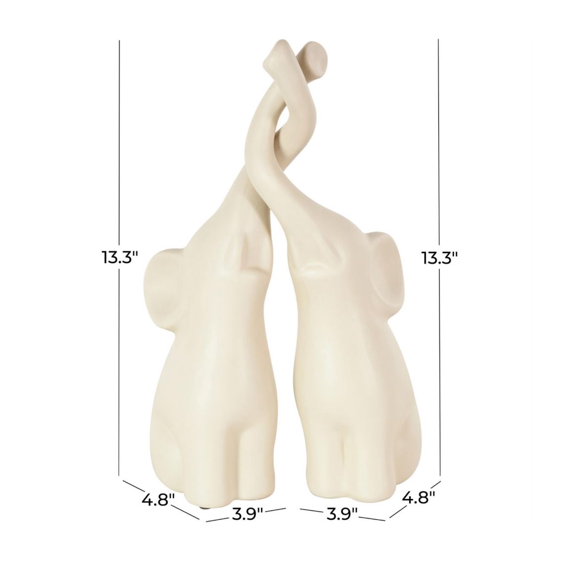 Escultura decorativa de elefante de cerámica color crema con trompas elevadas, juego de 2, 12,7 cm de ancho x 33 cm de alto