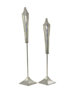 Este juego está hecho de materiales de aluminio puro para mayor durabilidad y ligereza. Esta elegante escultura presenta un acabado plateado mate.