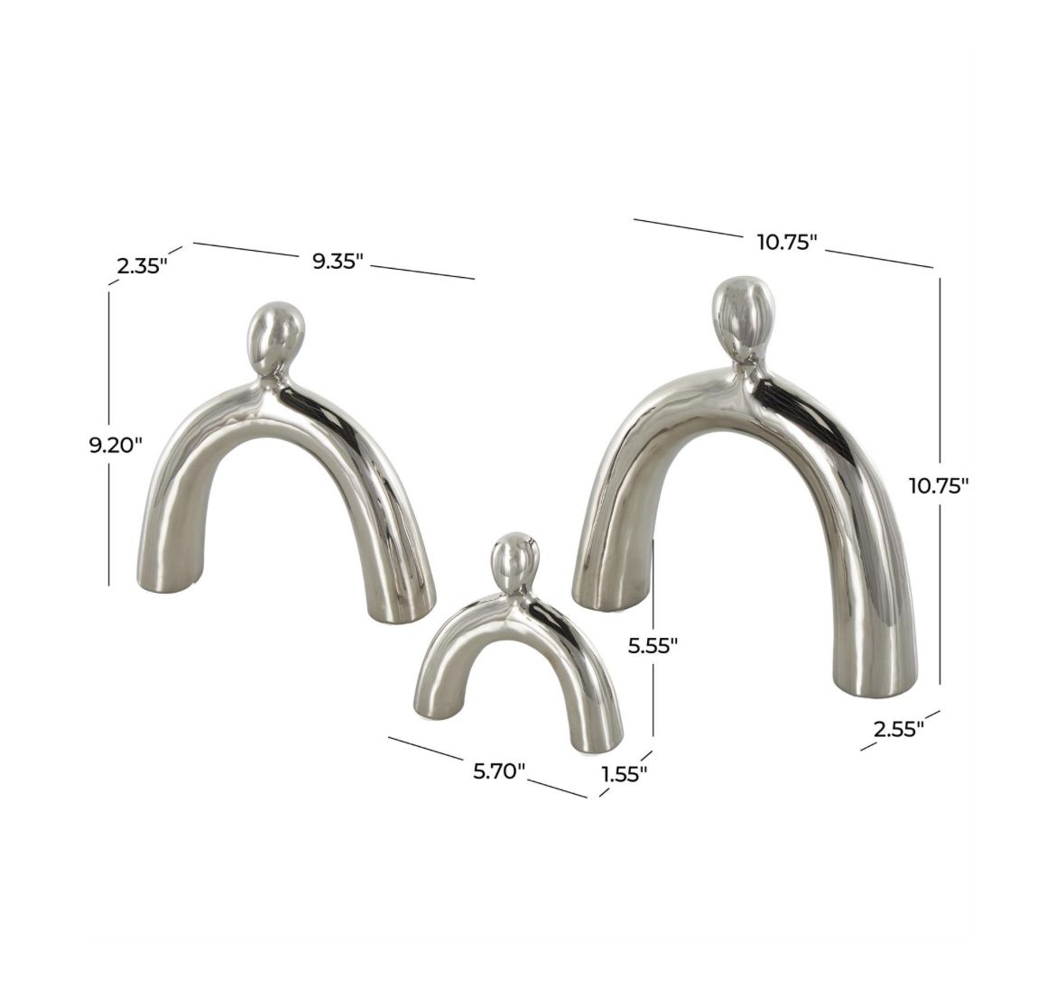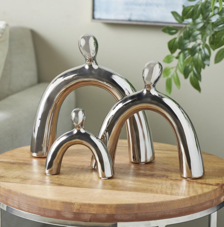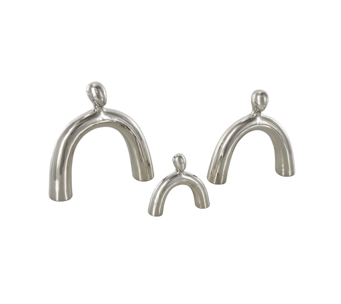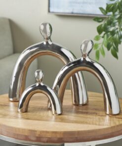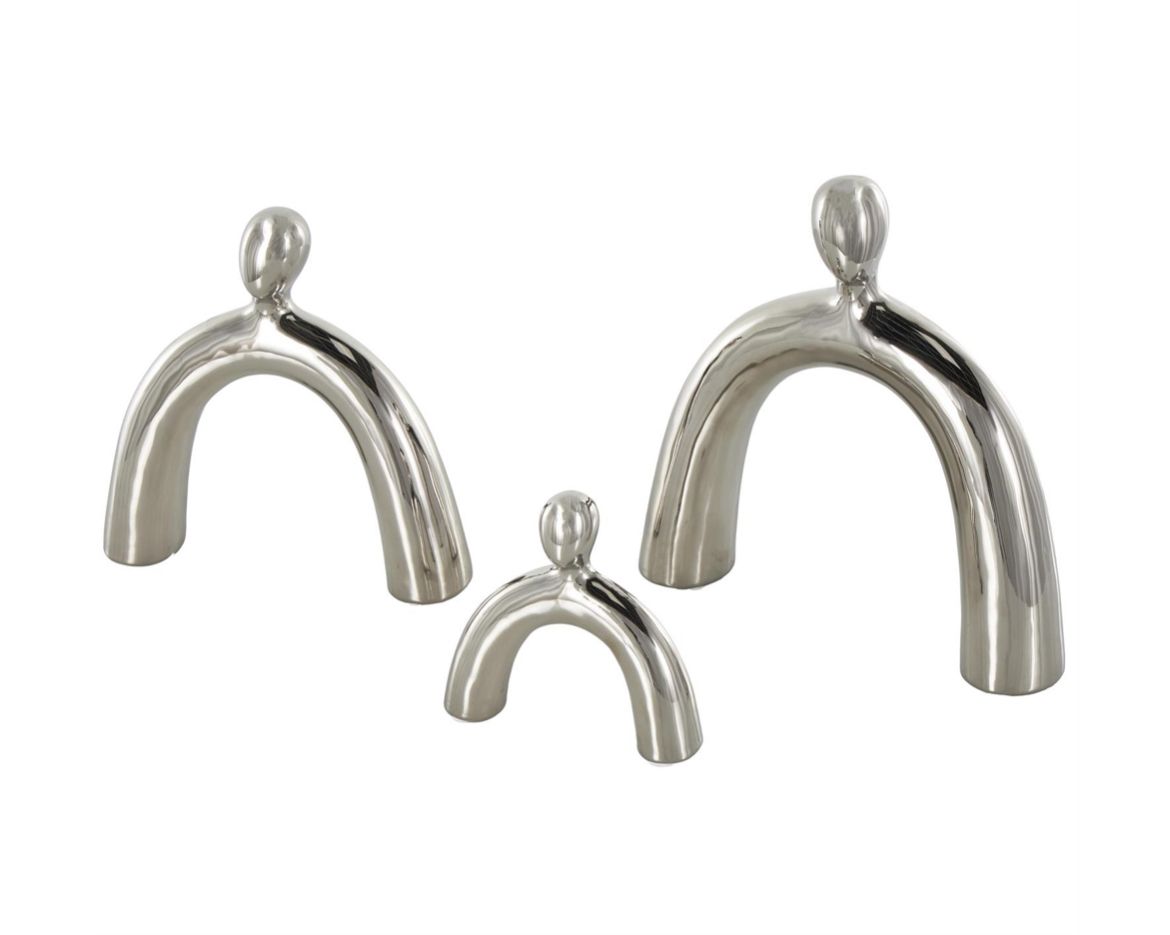 Escultura decorativa abstracta arqueada familiar de cerámica plateada, juego de 3, 28 cm, 23 cm y 15 cm de alto