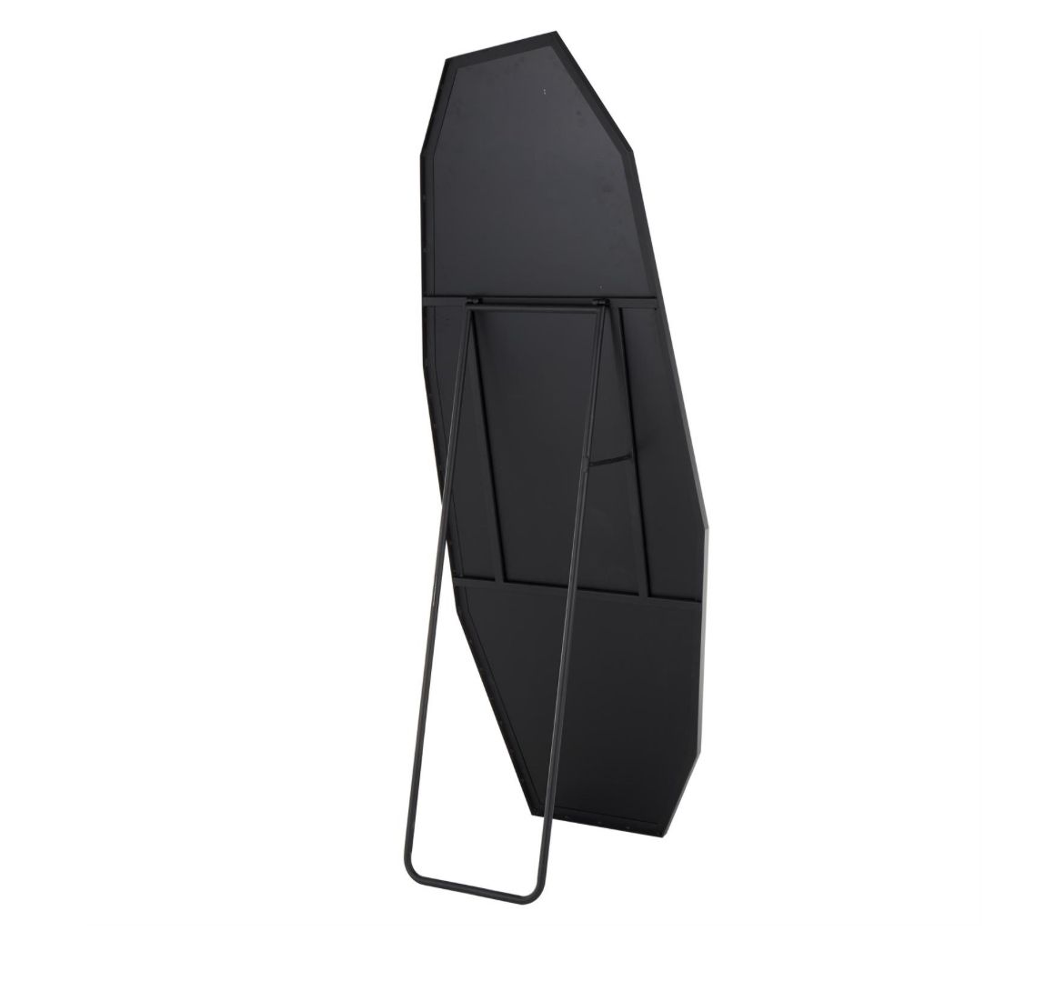 Espejo de pie plegable geométrico de metal negro, de estilo decágono, 63,5 x 50,8 x 165,4 cm