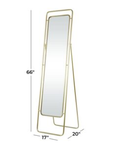 Información adicional importante: El hierro y el espejo le dan a este espejo de piso una forma sólida y duradera, el acabado dorado metalizado resalta el marco de este espejo de pie, un soporte trasero atornillado a su marco hace alarde de la característica independiente de este espejo de pie.