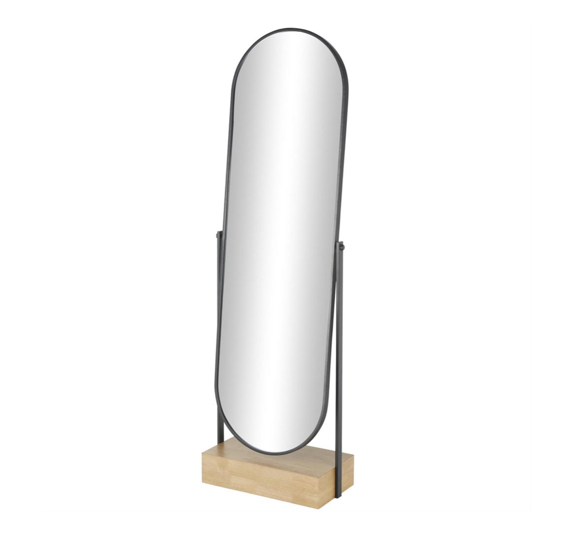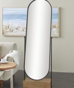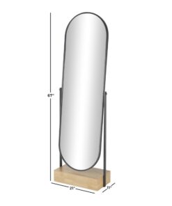 Espejo de piso ovalado de madera negra con base de madera marrón, 53 x 28 x 169 cm