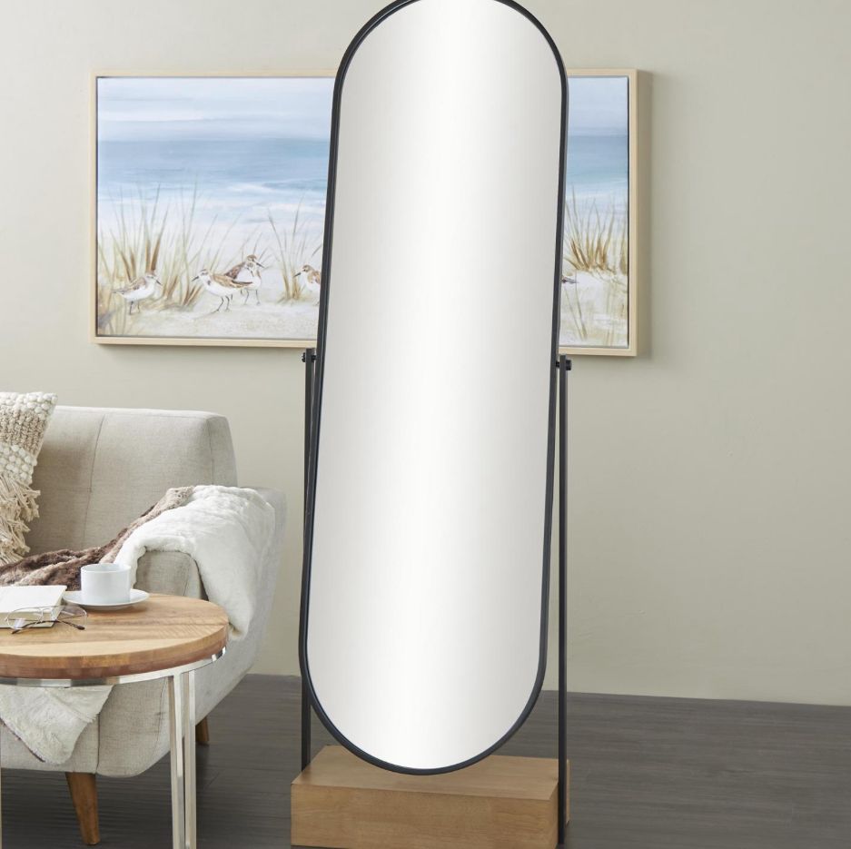 Espejo de piso ovalado de madera negra