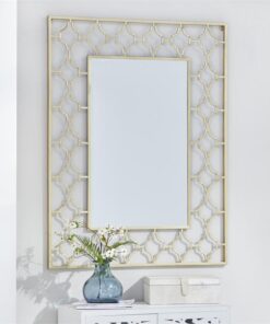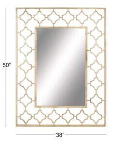Información adicional importante: Este espejo de pared rectangular tiene un acabado dorado que combina bien con una decoración de estilo glamuroso. Este espejo de pared con marco metálico presenta un patrón cuadrifolio y se puede colgar horizontal o verticalmente.