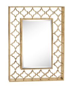Leve descripción del producto: Espejo rectangular con decorativo alrededor en metal dorado.