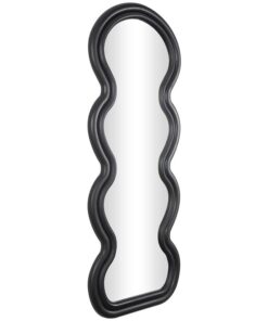 Leve descripción del producto: Espejo de pared con forma ondulada abstracta en tono negro.