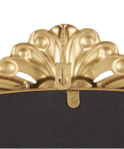 Leve descripción del producto: Espejo ovalado con marco en tono dorado y decorativo detallado.