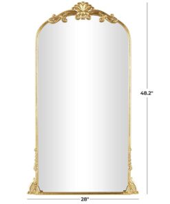 Información adicional importante: Espejo de pie que combina armoniosamente el hierro, la resina y el MDF, elegantemente enmarcado por el brillo reflectante del material de espejo de alta calidad, el marco dorado pulido de este espejo de pie brilla con un resplandor encantador.