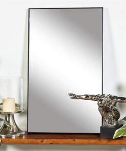 Leve descripción del producto: Espejo de pared en forma rectangular con un marco en tono negro sencillo.