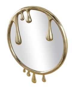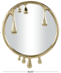 Información adicional importante: Este espejo de pared dorado para habitaciones está hecho de vidrio espejado y aluminio esculpido que crea las formas de goteo, el espejo de pared colgante redondo ofrece un detalle de goteo de aluminio dorado pulido.