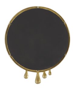 Leve descripción del producto: Espejo de pared redondo con un diseño goteado de metal en tono dorado.