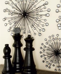 Información adicional importante: El juego de hierro de 3 decoraciones de pared presenta largos alambres de hierro negro azabache dispuestos en un estilo explosivo, complementados con adornos de joyas acrílicas con marco de alambre para un brillo adicional.
