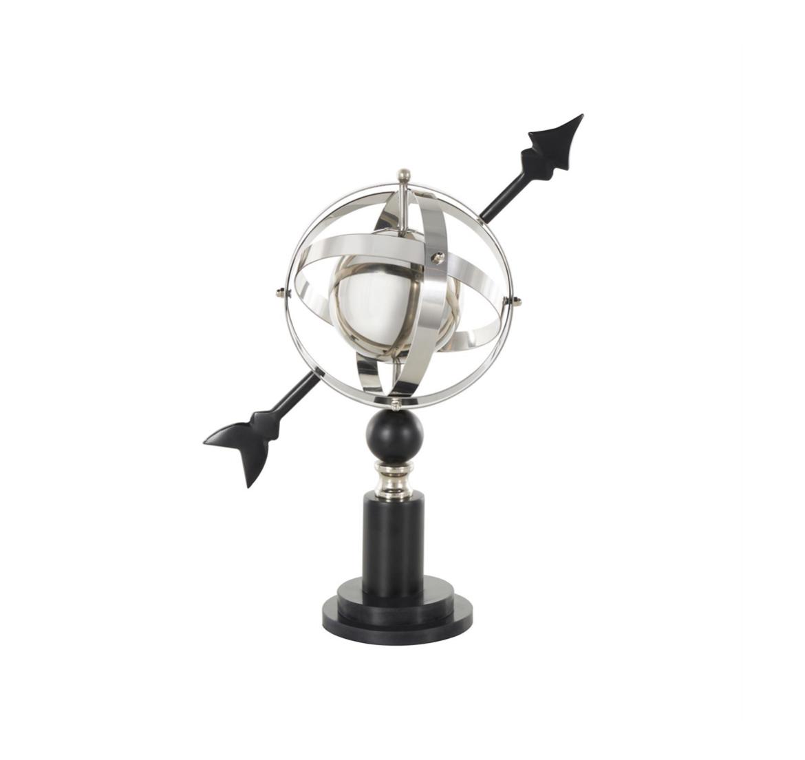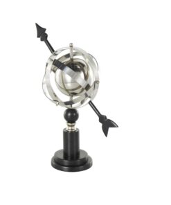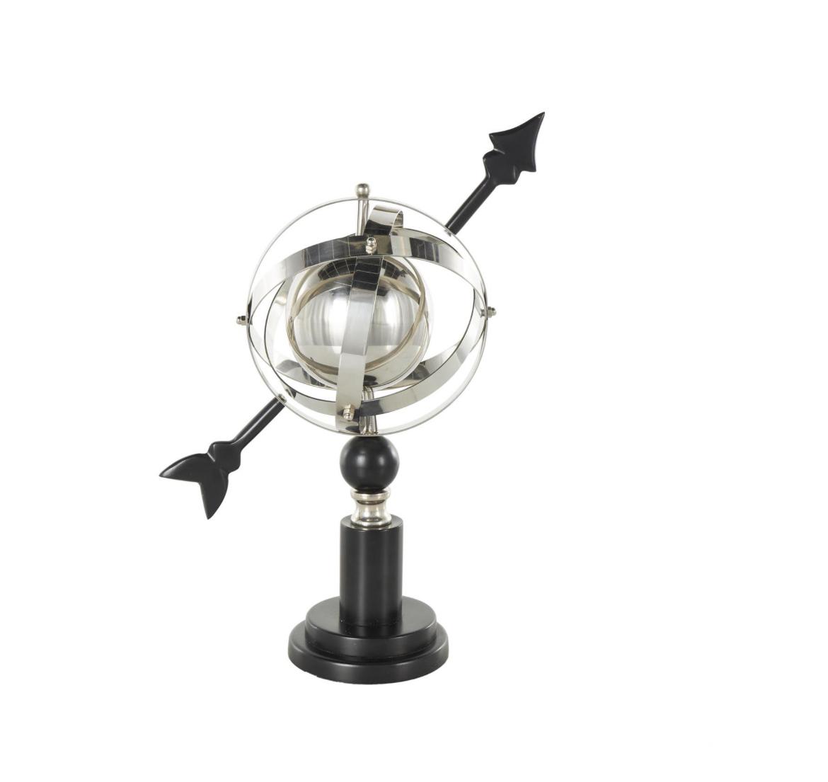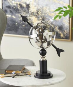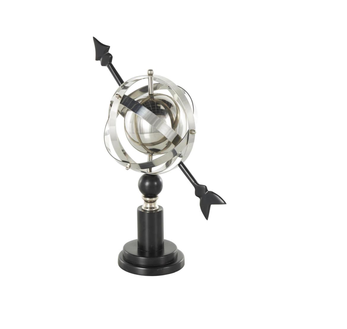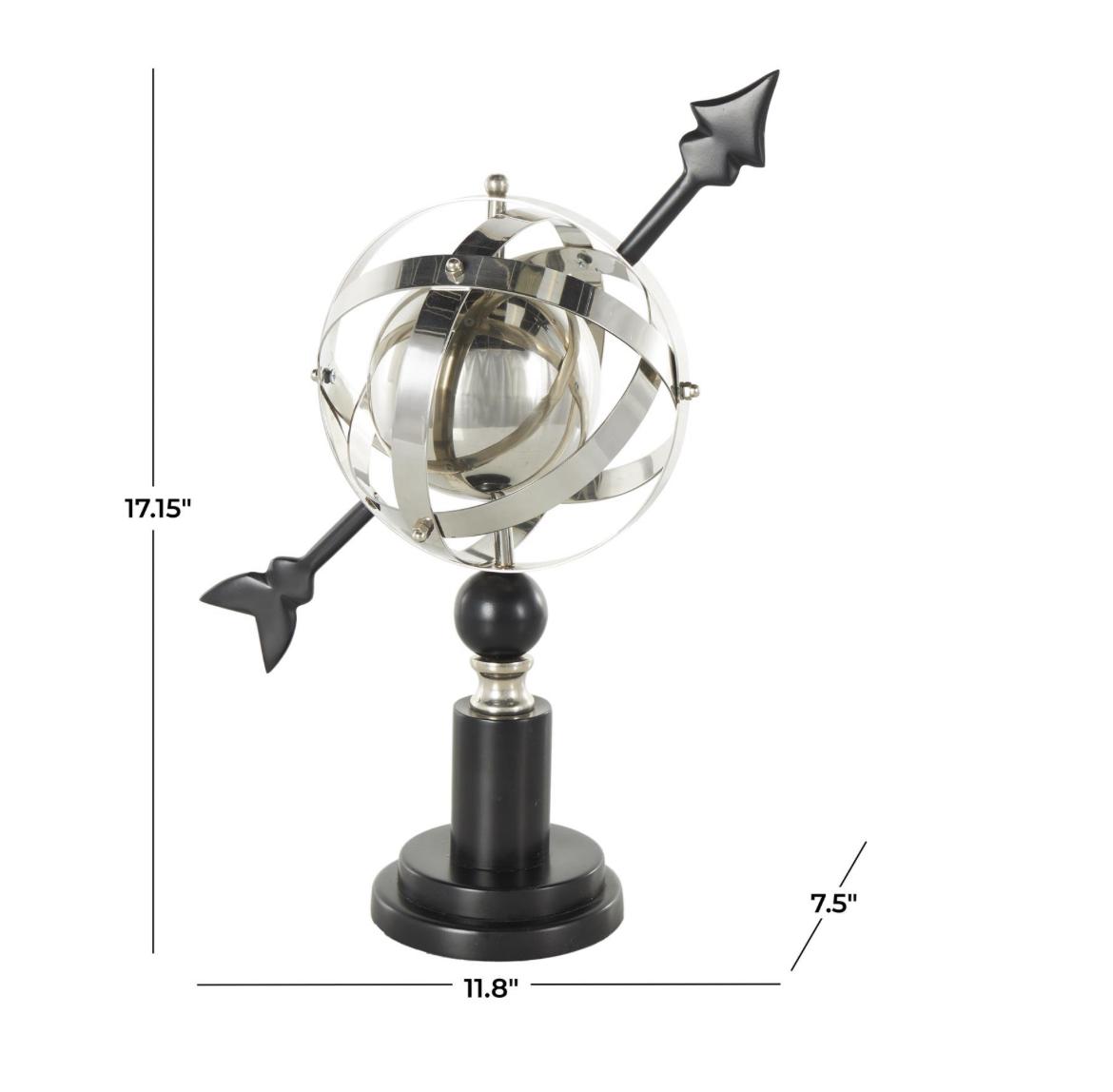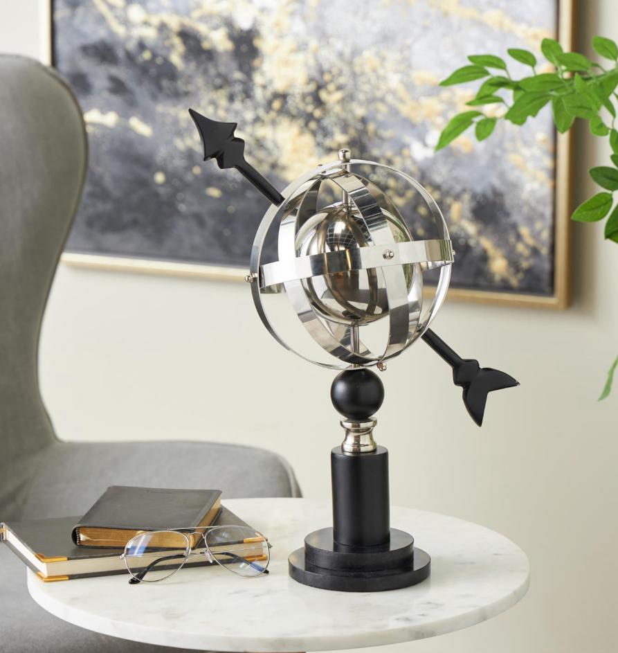 Este globo de acero inoxidable incluye intrincados anillos armilares que añaden un elemento de sofisticación atemporal a cualquier entorno.