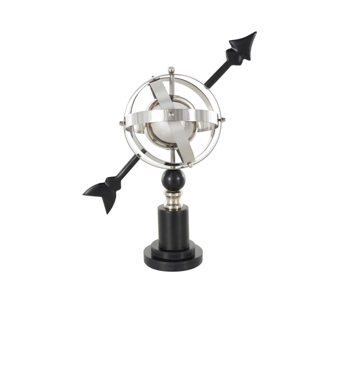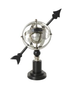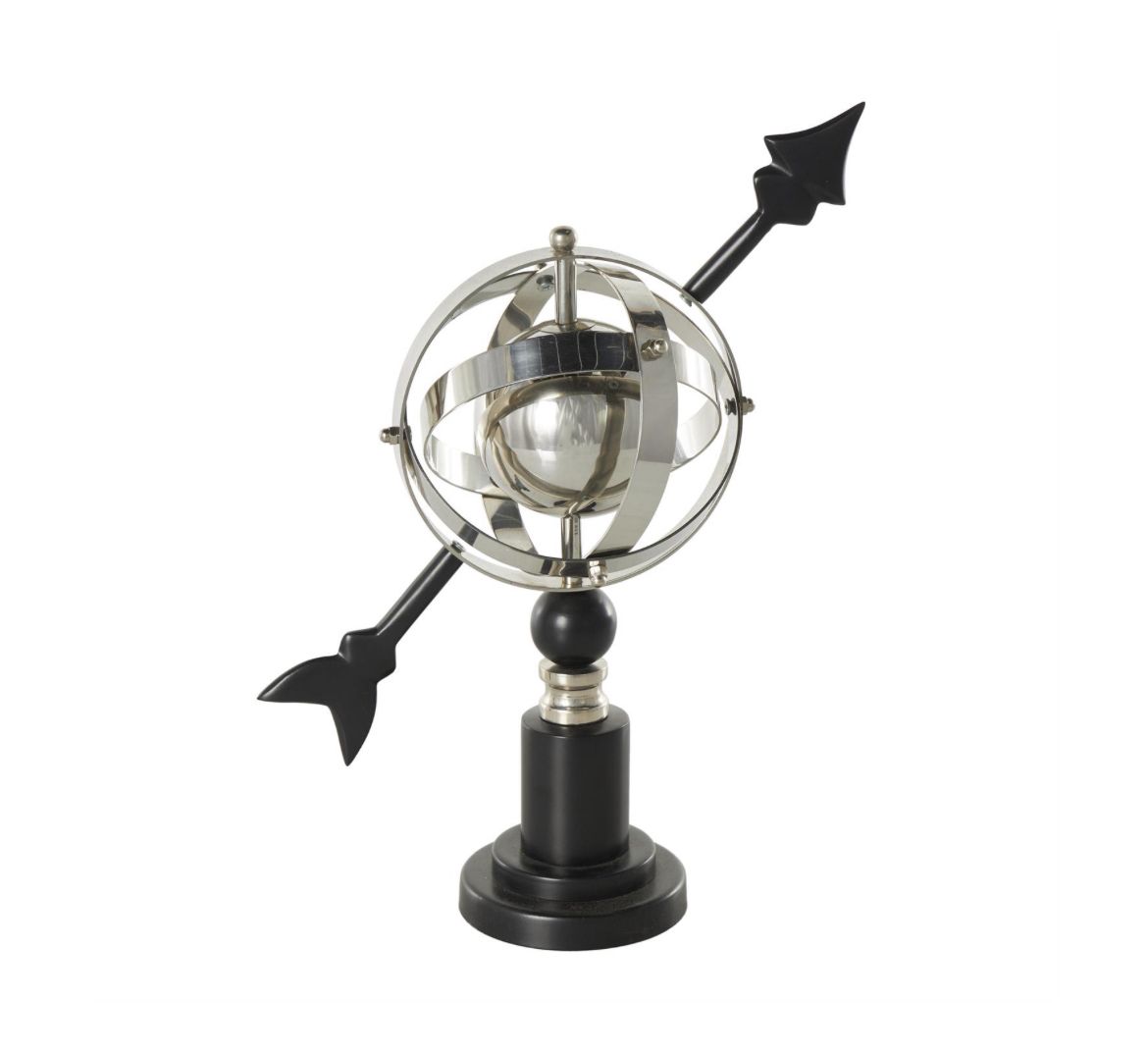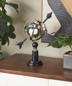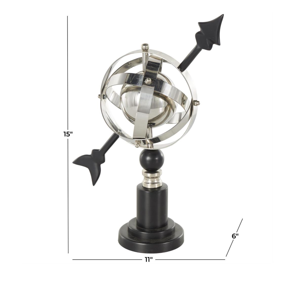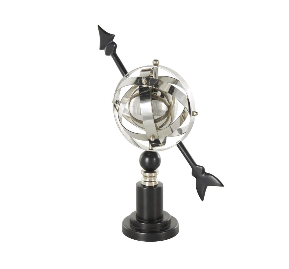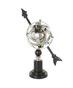 Este globo de acero inoxidable incluye intrincados anillos armilares que añaden un elemento de sofisticación atemporal a cualquier entorno.