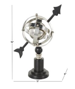 Globo terráqueo armilar educativo/geográfico de acero inoxidable negro con base redonda negra, 28 x 15 x 38 cm