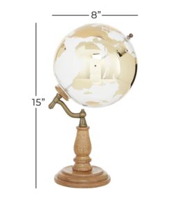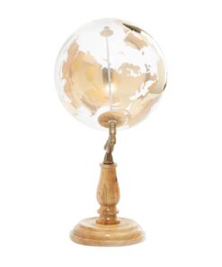 Globo de madera dorado con base escalonada