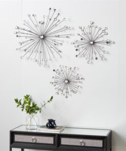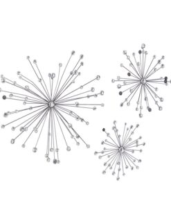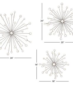 Información adicional importante: Con exclusivas cuentas acrílicas transparentes. La decoración de pared de hierro presenta una elegante escultura en forma de estrella con cristales redondos brillantes y brazos de metal escalonados en una mezcla de acabados de color plateado y otros tonos versátiles