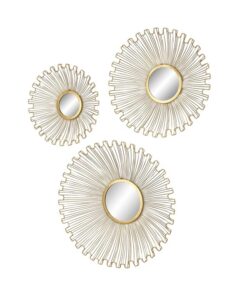 Leve descripción del producto: Set de soles de metal dorado alrededor con espejo al centro.