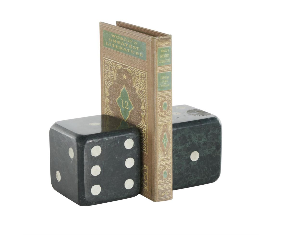 El juego de topes de libro cuadrados cuenta con dados verdes pulidos con puntos blancos, lo que agrega un toque contemporáneo a cualquier espacio.