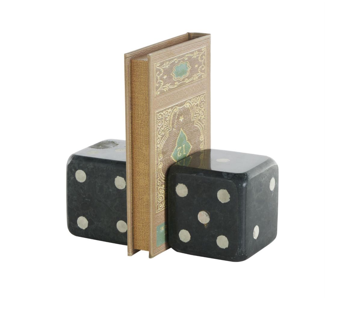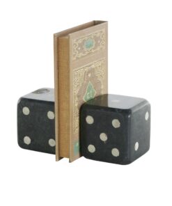Este juego de 2 sujetalibros de mármol ofrece un toque divertido y moderno con su diseño de dados, lo que lo convierte en una elegante adición a su colección de libros o decoración de oficina.
