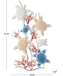 Información adicional importante: Esta decoración de pared multicolor para el hogar está meticulosamente elaborada completamente en metal, lo que brinda una auténtica sensación marítima. La decoración asimétrica de la pared presenta una encantadora mezcla de tonos blancos, celestes y crema en un acabado mate, acentuado con coral rojo vibrante.