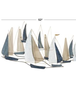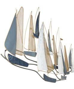Leve descripción del producto: Veleros decorativos en tono azul, beige y blanco metálico para pared